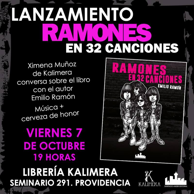Un nuevo libro sobre Ramones, la legendaria banda punk, será lanzado este viernes 7 de octubre. Ramones en 32 canciones, se titula la obra firmada por Emilio Ramón y editada por Santiago-Ander, en que recorre la obra del grupo a partir de su repertorio más importante.