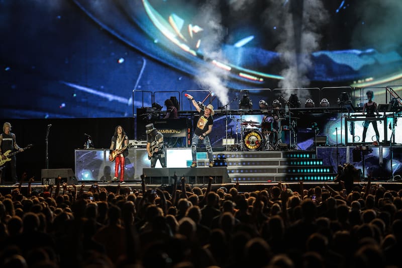 El repertorio del We’re F’N Back! Tour 2022 que los trae al país, se concentra en los años de gloria del grupo con siete temas del legendario Appetite for destruction (1987), acaso el último gran álbum de rock clásico, como It’s so easy (el tema de apertura), Nightrain, Mr.Brownstone, Rocket Queen, Sweet Child O’mine, Welcome to the jungle y Paradise City (el tema que habitualmente se toca al cierre).