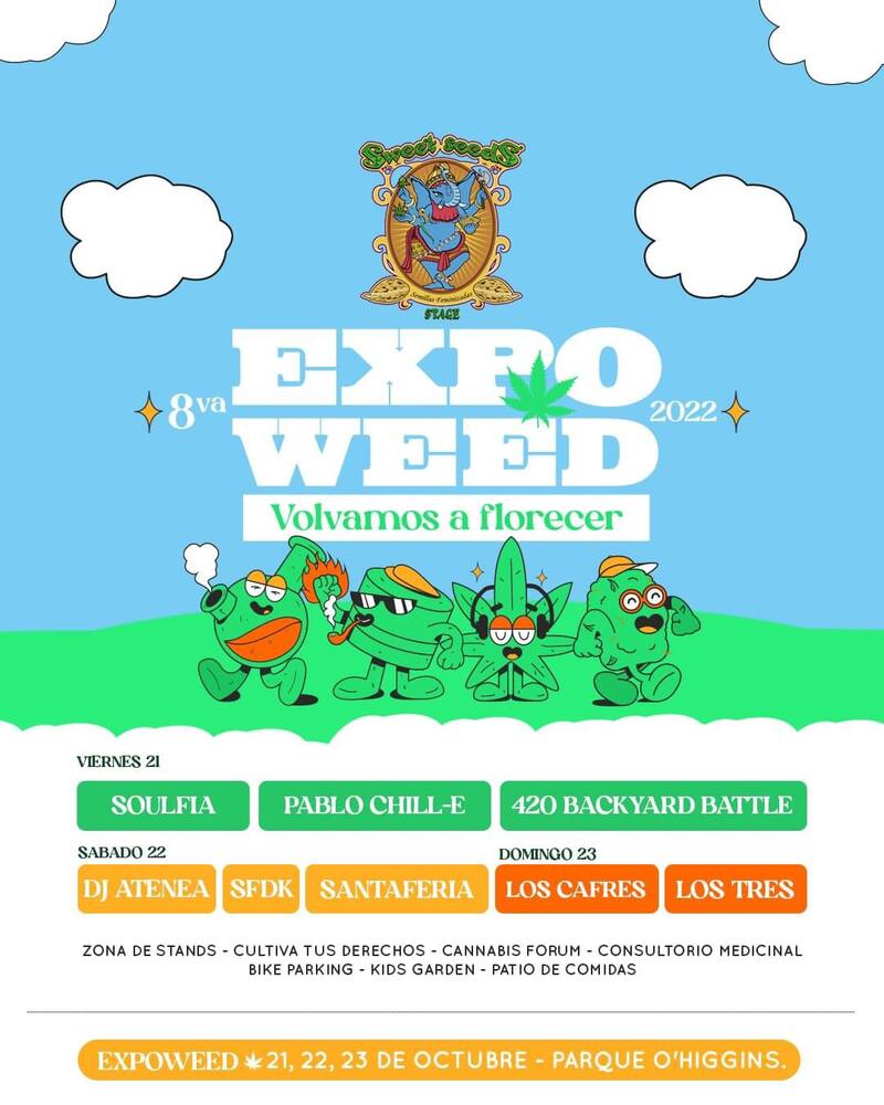 La Expo Weed se realizará entre este viernes 21 y el domingo 23. Entre sus presentaciones musicales, destacan las de artistas chilenos y extranjeros como Los Tres, Soulfía, Pablo Chill-E, Santaferia, Los Cafres, SFDK, entre otros. “Es el regreso, un evento que es casi una tradición para el parque y nuestra comunidad, el 2019 no se pudo hacer por el estallido y por la pandemia, tenemos un line up reforzado con invitados nacionales e internacionales”, cuenta Claudio Venegas, director del evento.