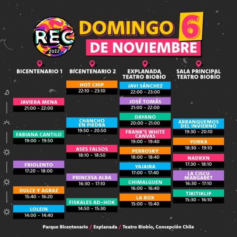 Cuenta regresiva para la próxima edición del festival Rock en Conce (REC) 2022, cita que se hará este sábado 5 y domingo 6 de noviembre en el Parque Bicentenario y el Teatro Biobío, en Concepción.