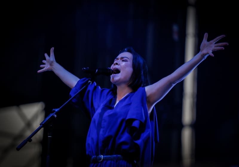 A lo largo de su presentación, la cantante se mantuvo firme y cuadrada en su performance, que a ratos rememoraba a una ceremonia espiritual digna de sus raíces niponas. Así pasaron temas como I will, I bet on losing dogs –donde lanzó movimientos de boxeo y patadas, casi como si se tratara de un ring en el que la pelea era algo sentimental– I don’t smoke y Drunk walk home, uno de los momentos donde la interpretación llegó a su punto cúspide, aunque sin los gritos viscerales que caracterizaban sus presentaciones de hace algunos años atrás.
