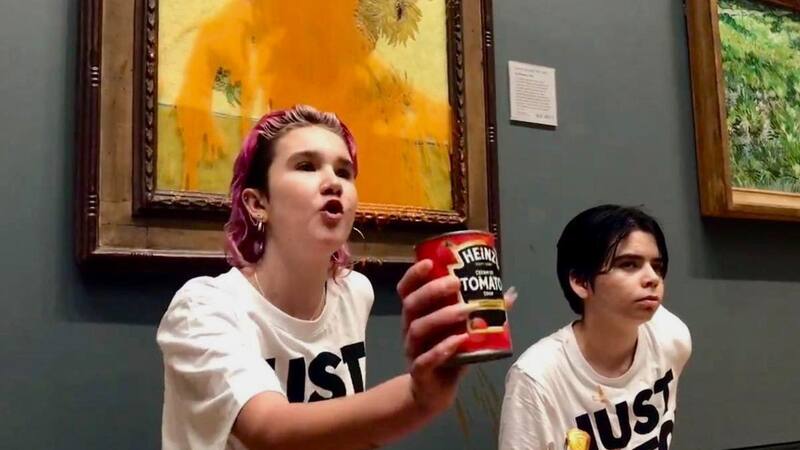 Varios activistas arrojaron harina este jueves a un coche diseñado por Andy Warhol a finales de los años 70 y que estaba expuesto en Milán. En Roma, miembros del grupo salpicaron un cuadro del pintor holandés Vincent Van Gogh con sopa de guisantes a principios de este mes.
