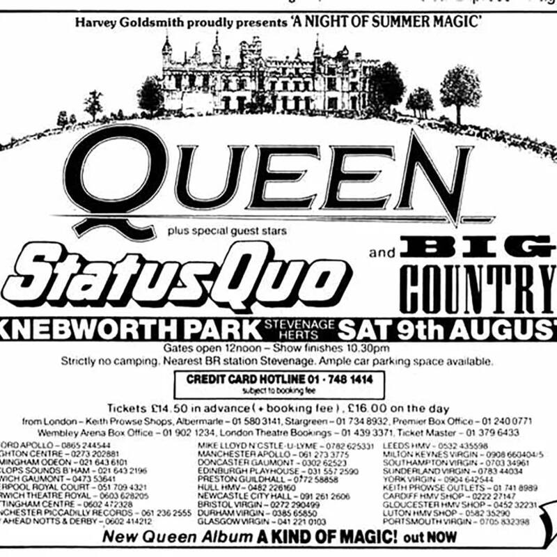 Así fue como Queen llegó al Knebsworth Park para dar un concierto ante al menos 120.000 personas (aunque se calcula que hubo varios miles más) y que, imprevistamente, se transformaría en el último recital de la banda junto a Freddie Mercury. La jornada fue bautizada como A night of summer magic.