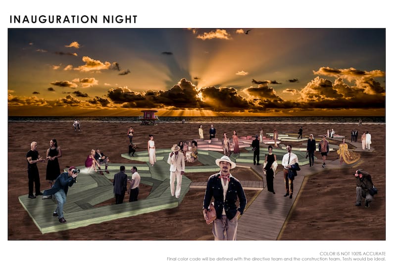 Fue un trayecto largo, tal vez de forma sinuosa. Paula de Solminihac (1974) estudió arquitectura, pero su falta de sensibilidad hacia las matemáticas la redirigió hacia historia primero y más tarde, y definitivamente, a la escuela de arte. Trabajó en torno al fuego y la arcilla, exploró en los procesos y el ambiente natural: instaló un atrapanieblas en la costa del norte, plantó papas en Chiloé y trajo una playa al Mavi en 2019. Ahora, su nuevo proyecto de algún modo la conectó con su primera pasión: Morning Glory une arte y arquitectura en una obra a gran escala que invita a la interacción en la playa, en Miami Beach.