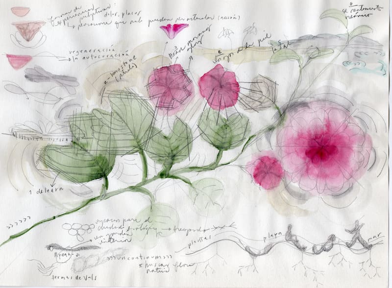 “En el caso de Morning Glory, el lenguaje del arte invoca a una flor viajera, que se manifiesta en el suelo de arena, frente al mar, como una invitación a divagar en búsqueda de nuevos significados motivados por el hecho de tocar, habitar, estar”, escribió en el programa de presentación.