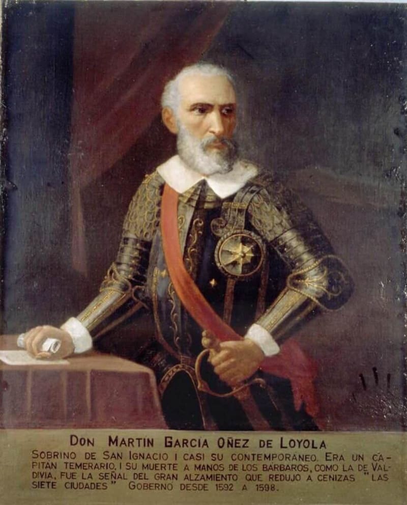 Al frente de los hispanos estaba el entonces gobernador del Reino de Chile, Martín García Oñez de Loyola. Un militar experimentado, sobrino-nieto de San Ignacio de Loyola, que había logrado aplacar la sublevación de Tupac Amaru, en el Virreynato del Perú. Por esa acción fue recompensado como se acostumbraba en la época; con cargos, encomiendas, e incluso con la mano de la sobrina de Amaru; una joven ñusta quien pertenecía a la realeza incásica, criada por las religiosas del convento de de Santa Clara del Cuzco y bautizada como Beatriz Clara Colla.