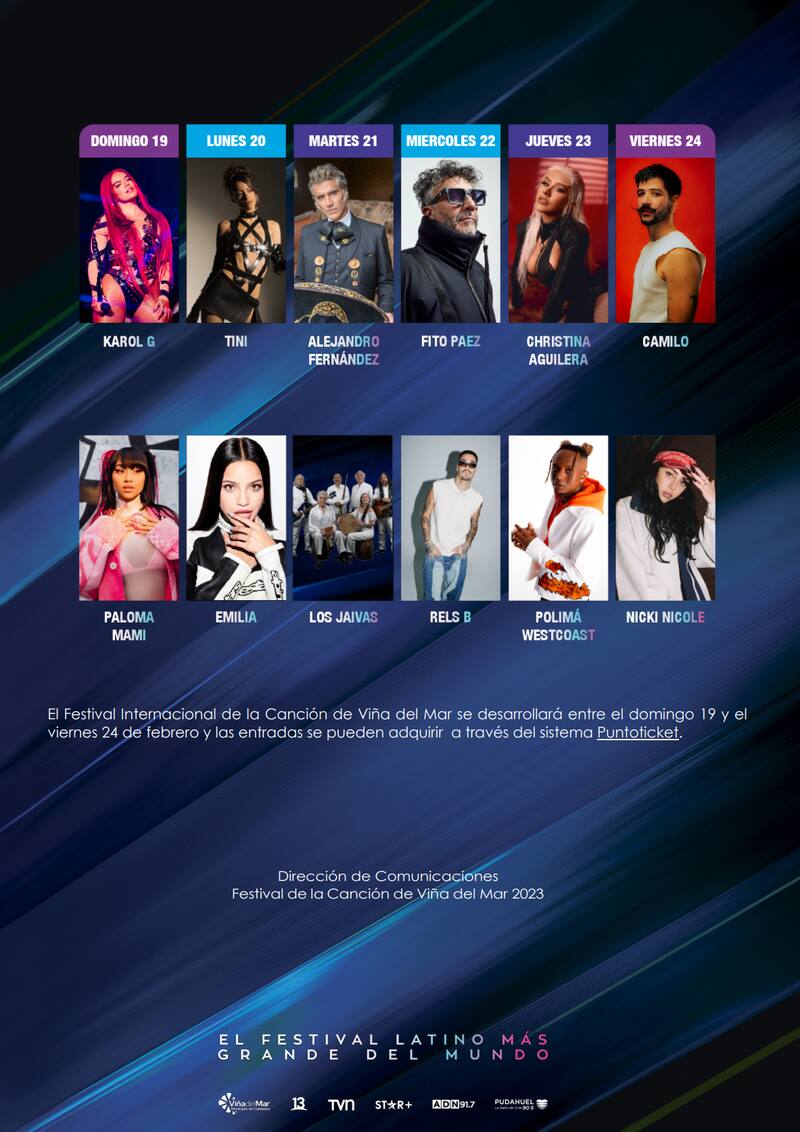 A la espera de la confirmación de las actuaciones de los humoristas, el cartel de artistas del Festival de Viña quedó cerrado. Mira el detalle a continuación.