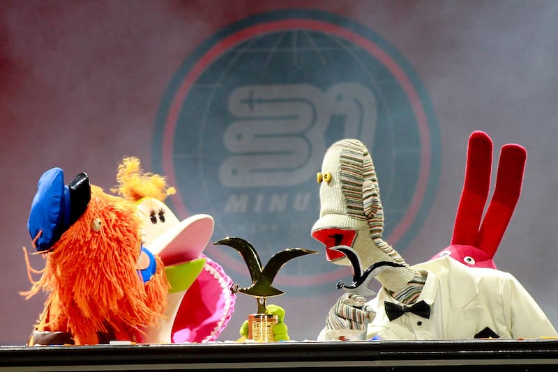 En esa misma noche que cerró González, debutó en la Quinta Vergara el colectivo de músicos y artistas, encabezados por Pedro Peirano y Álvaro Díaz, que hacía en vivo el espectáculo basado en la serie infantil 31 Minutos. Un show que ya había sido probado en otros escenarios a lo largo del país, y que contenía tanto inocencia como el habitual filo de sus creadores.