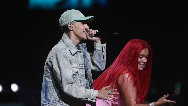 El encuentro entre ambos artistas urbanos sucedió en el show de la colombiana en Viña, esta noche en la Quinta Vergara.