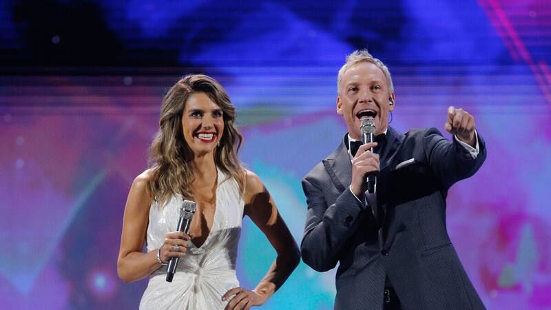 La audiencia, entusiasmada por la fiesta, pidió el beso, ritual al que los conductores accedieron. Fue el blondo animador quien le dio un pequeño beso a su compañera.