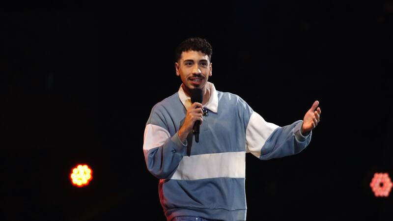 Asumiendo que entró “por la ventana” al evento, Urrutia partió su rutina aludiendo a esa situación: “Me invitaron hace una semana. Otro comediante que se bajó. Quiero ser sincero. Hace una semana me hicieron la llamada más rara del mundo: ¿te gustaría participar del festival latino mas importante del mundo que nunca has pisado en tu miserable vida?”.