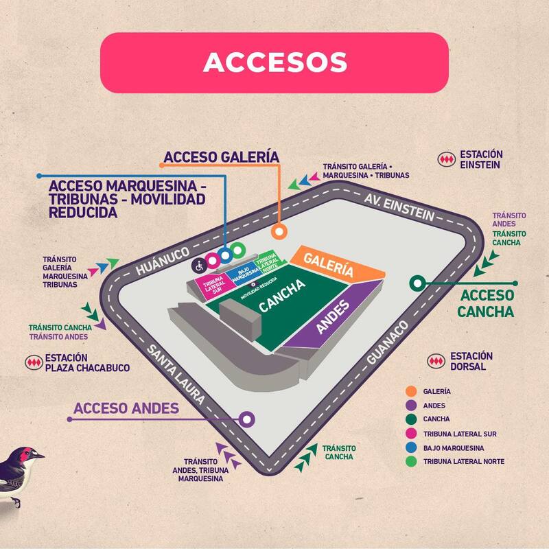 El acceso al recinto dependerá de la ubicación de entradas. Para saber por cual calle por donde entrar, revisa la foto a continuación.