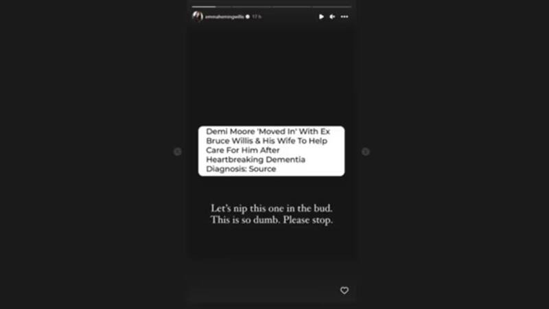 Fue tajante. A través de sus redes sociales, la actual esposa de Bruce Willis salió a desmentir la información que señalaba que Demi Moore se mudaría a la casa de Willis para ayudar en sus cuidados. “Cortemos este rumor de raíz. Esto es una tontería. Por favor, basta”, señaló Emma Heming en una historia de su cuenta de Instagram.
