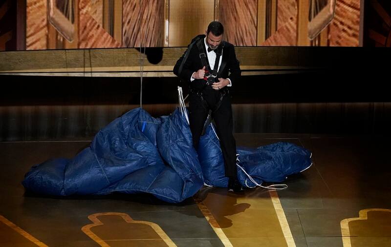 Luego se ríe del pésimo manejo de la producción del evento en 2022, cuando Will Smith abofeteó a Chris Rock y subió a agradecer su triunfo como Mejor actor. Señalando que en esta oportunidad hay un equipo de crisis para atajar ese tipo de situaciones, Kimmel cita a Michael B. Jordan, Michelle Yeoh, Pedro Pascal y Steven Spielberg y sus últimos papeles en la pantalla.