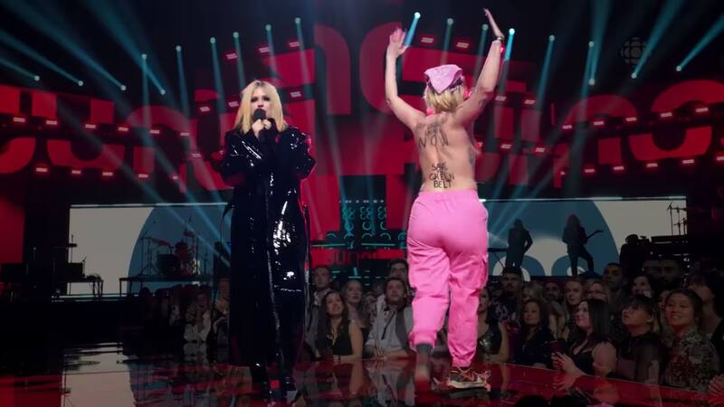Este lunes, Avril Lavigne fue una de las artistas encargadas de subirse al escenario en los premios musicales canadienses Juno Awards. Mientras presentaba el siguiente acto, la cantante de Girlfriend fue interrumpida por una activista con sus pechos al descubierto y con las frases “Save the Greenbelt” y “Land Back” escritas en la parte interna de sus brazos.