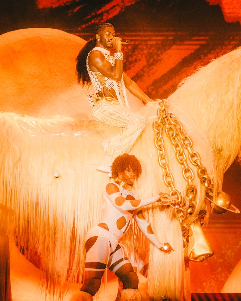 Para los que crecimos con el pop de estrellas como Michael Jackson o Prince, artistas de nueva generación como Lil Nas X son una rareza que se puede bifurcar en dos direcciones: una payasada excéntrica de un tipo que exacerba su homosexualidad o una música que resulta fría, pero hipnotizante debido a la cantidad de estímulos que despliega en el escenario, con rayos de luces que van y vienen, llamaradas de fuego, caballos mecánicos que se desplazan en la pista y coreografías kilométricas de ocho bailarines que parecen replicantes de la figura central.