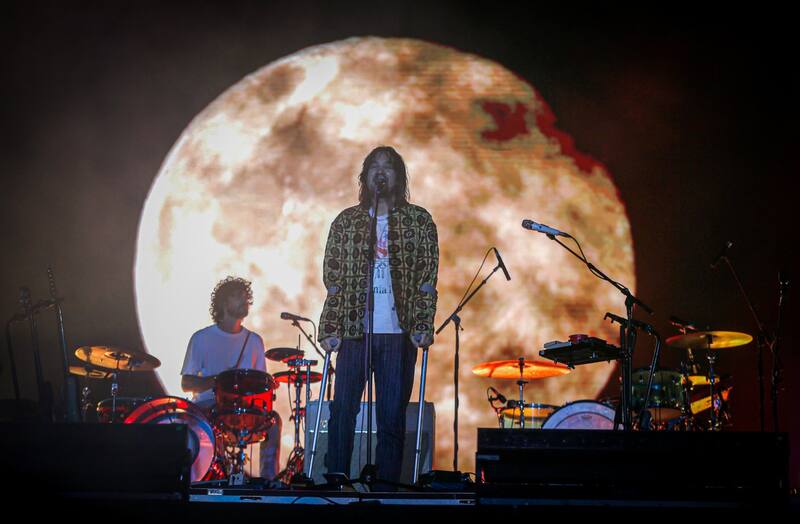 Con un par de muletas en el escenario, el proyecto liderado por Kevin Parker hizo hincapié sobre todo en su último disco, el bailable The slow rush. Pese a las atractivas visuales sicodélicas y los arreglos de algunas canciones, el punto negro fue el abrupto corte de la transmisión vía streaming, solicitado por el cantante, y que causó molestia en redes sociales.
