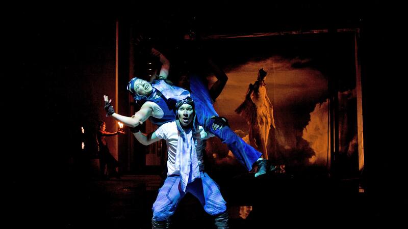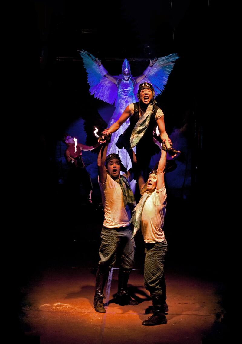 ALTAZOR. Pasajero de su destino ocurre sobre, dentro y alrededor de una torre de seis metros de altura, en la que los intérpretes ascienden y descienden, desarrollando escenas y números aéreos, acompañados por la música original del compositor nacional Jorge Aliaga, la que amalgama las distintas secuencias y da vida a este espectáculo.