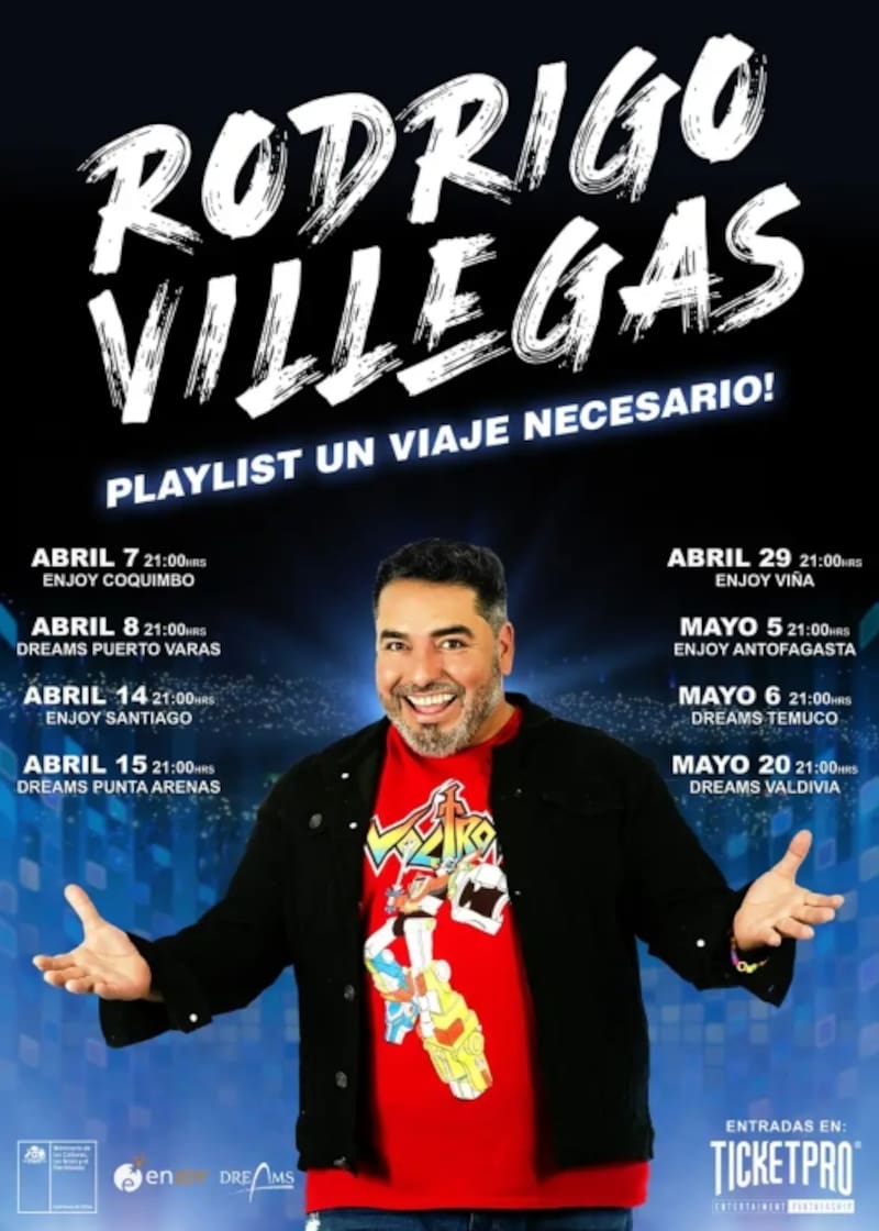 Playlist un viaje necesario!, ese el nombre de la gira con la que el humorista iniciará su recorrido el 7 de abril en Enjoy Coquimbo y que seguirá por Puerto Varas, Santiago, Punta Arena, Viña del Mar, Antofagasta, Temuco, Concepción y Valdivia. “Hay mucho material nuevo, chistes y remates que hay arreglar, y que también fueron descartados para Viña. Uno va haciendo como un pequeño Frankenstein de rutina”, dice el humorista.