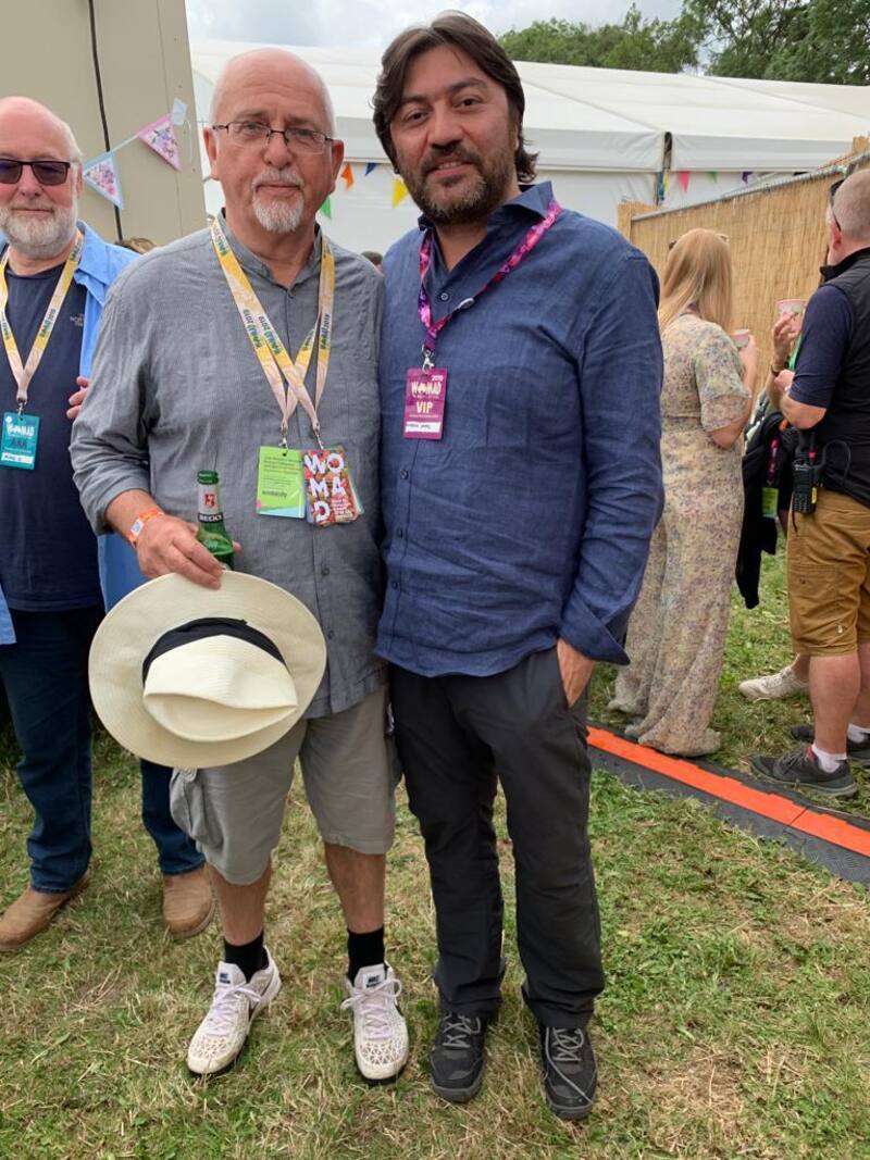 Está súper interiorizado de todos los festivales WOMAD en el mundo. Él es el fundador, de alguna manera el presidente honorario. Nosotros trabajamos físicamente con él, es decir, no virtualmente. Nosotros y todos los WOMAD del mundo nos encontramos con él, personalmente todos los años la última semana de junio en UK. Trabajamos con los equipos de él, en que tenemos pares; yo soy director general, tengo un director general de todos los WOMAD; el director de programación de Chile tiene una par que es la directora de programación de todos los WOMAD. Entonces trabajamos en equipo. Ahí cerramos la parte de la curatoría.