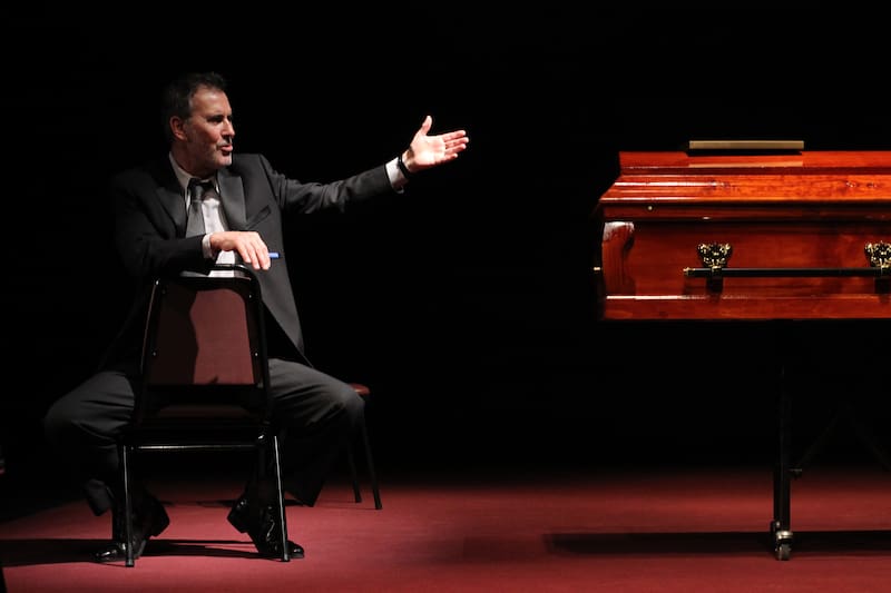 Hay otro elemento que Campos destaca sobre la historia, y que resulta transversal en el trabajo de LaBute: el humor, el que ejerce como una de las características narrativas más inteligentes del guion. Para el actor, justamente eso “es lo que hace la diferencia entre un autor y un gran autor. Neil LaBute es capaz de acercarse al tema del fin de la vida, al término de una relación matrimonial por la muerte de uno de los conyugues, y hacerlo con una levedad. No hay que confundirlo con frivolidad. Se trata de una inteligencia, una agudeza y una levedad que desembarca en que tú haces el duelo junto con el marido, pero desde dentro”.