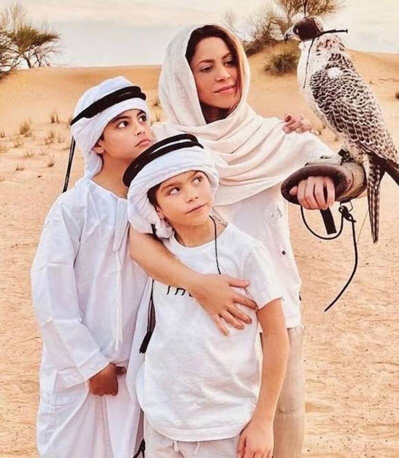 Hasta fines de diciembre, Shakira no parecía tener inconvenientes en exhibir a sus hijos en redes, como remate de un 2022 altamente mediático. “En el desierto buscando la serenidad en esta Navidad”, escribió en Instagram en una foto donde se le ve posando con un halcón y look beduino, tanto ella como los chicos. “Gracias por todo el amor y el apoyo que nos disteis a mí y a mis hijos durante este año”, continuó, acompañando una imagen que de seguro tomó un buen rato producir. Ninguna foto de un astro a ese nivel es un clic espontáneo o a la rápida.