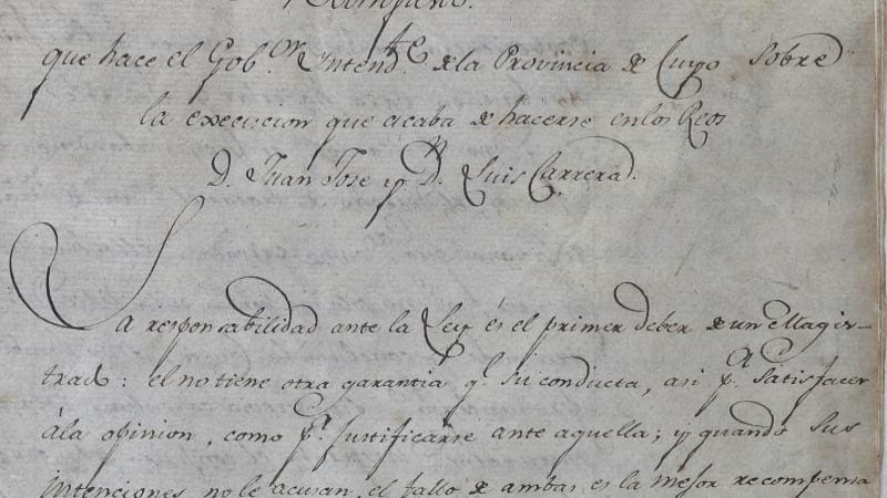 La muerte siempre es difícil de escribir. Pone las muñecas tensas y hace fácil recurrir a lugares comunes. Pero el pulso de Toribio Luzurriaga, gobernador de la Provincia de Cuyo en Argentina, el año 1818, fue más bien calmo. Con una caligrafía pulcra -como lo muestra el documento conservado en el Archivo Nacional-, anotó: