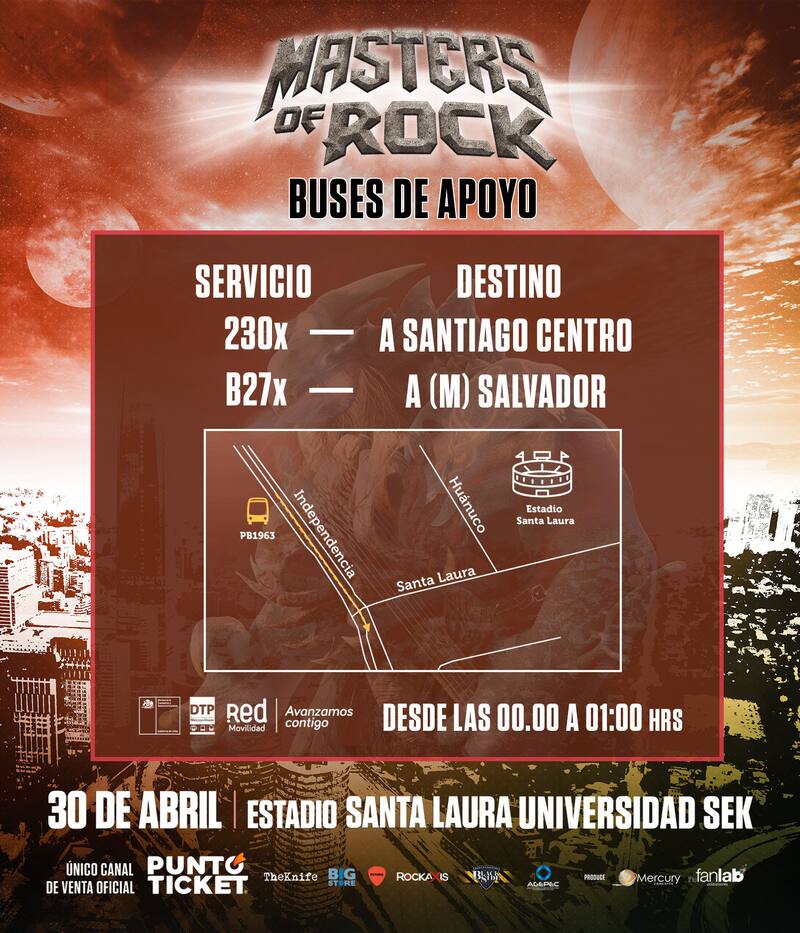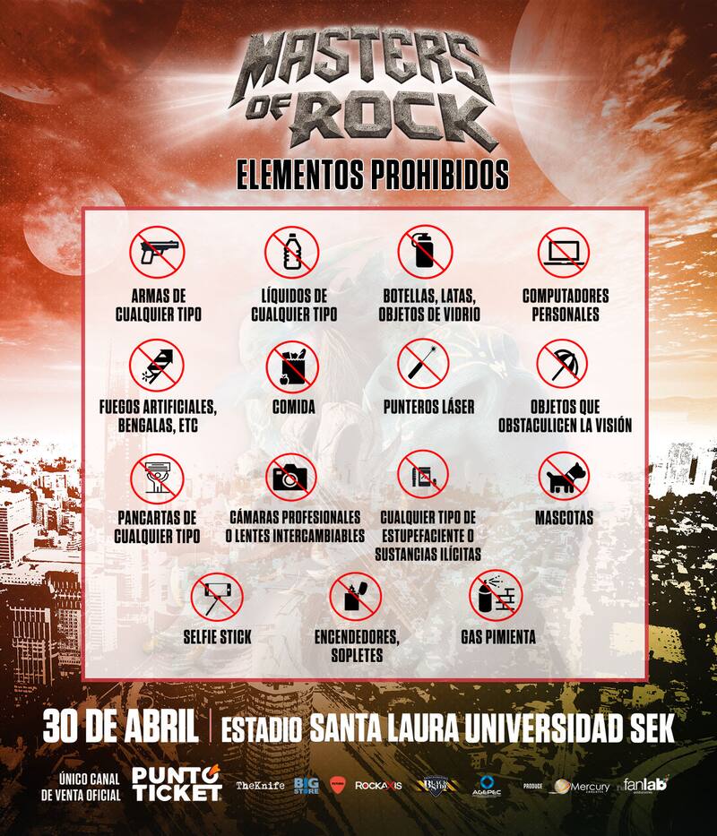 Finalmente, se sugiere a las personas no acudir a las cercanías del Estadio Santa Laura si no cuenta con un ticket para el concierto Masters of Rock 2023, ya que el ingreso al perímetro estará resguardado para mantener el orden y garantizar la seguridad de los asistentes y trabajadores del evento.