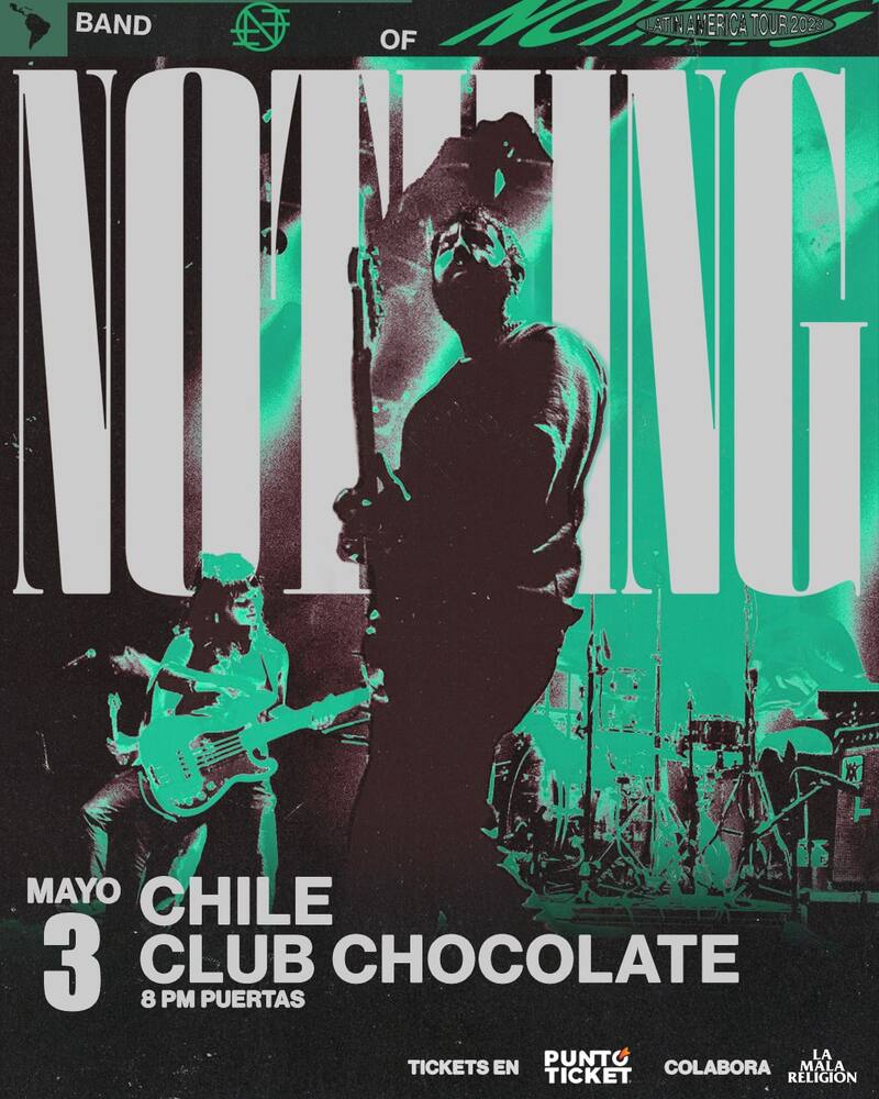 Una próxima visita internacional se hará presente en el Club Chocolate el 3 de mayo: el grupo estadounidense Nothing aterrizará en Chile por primera vez con un show que recogerá los éxitos presentes en sus 13 años de trayectoria musical.
