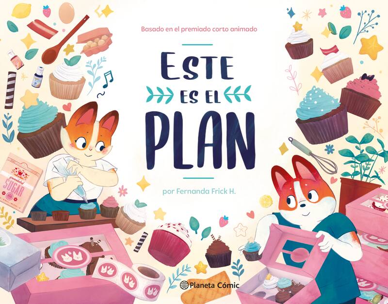 Ilustradora y animadora, en 2017 Fernanda Frick estrenó Here’s the plan, un corto animado que tuvo una cálida y exitosa recepción. Estrenado en Nashville, premiado en Chilemonos, estuvo incluso en camino al Oscar. Ese mismo año la autora comenzó a trabajar en su adaptación a novela gráfica. Y luego de publicar otro libro en el género, Trazos, da a conocer ahora la versión en cómic de su filme. La historia gira en torno a Kat y Doug, una pareja formada por una gata y un perro que comparten el amor por la cocina, especialmente por hornear pasteles. Sueñan con instalar una pastelería y trabajan para conquistar su sueño. Son muy felices cuando lo logran, pero agobiados por un desastre accidental deben cerrar. Vuelven a dedicarse a otras actividades, laboriosamente, siempre con el plan de volver a la pastelería. Pero pasan los meses y los años, la familia crece, las responsabilidades también, y la distancia comienza a instalarse entre ellos. La amargura y la frustración los invade y parece que los conducirá irremediablemente al naufragio, pero de algún modo, con amor y un golpe de rebeldía, buscarán revivir el plan. Una historia emotiva y luminosa en torno a los sueños y el amor en pareja, bellamente desplegada con delicadas ilustraciones.