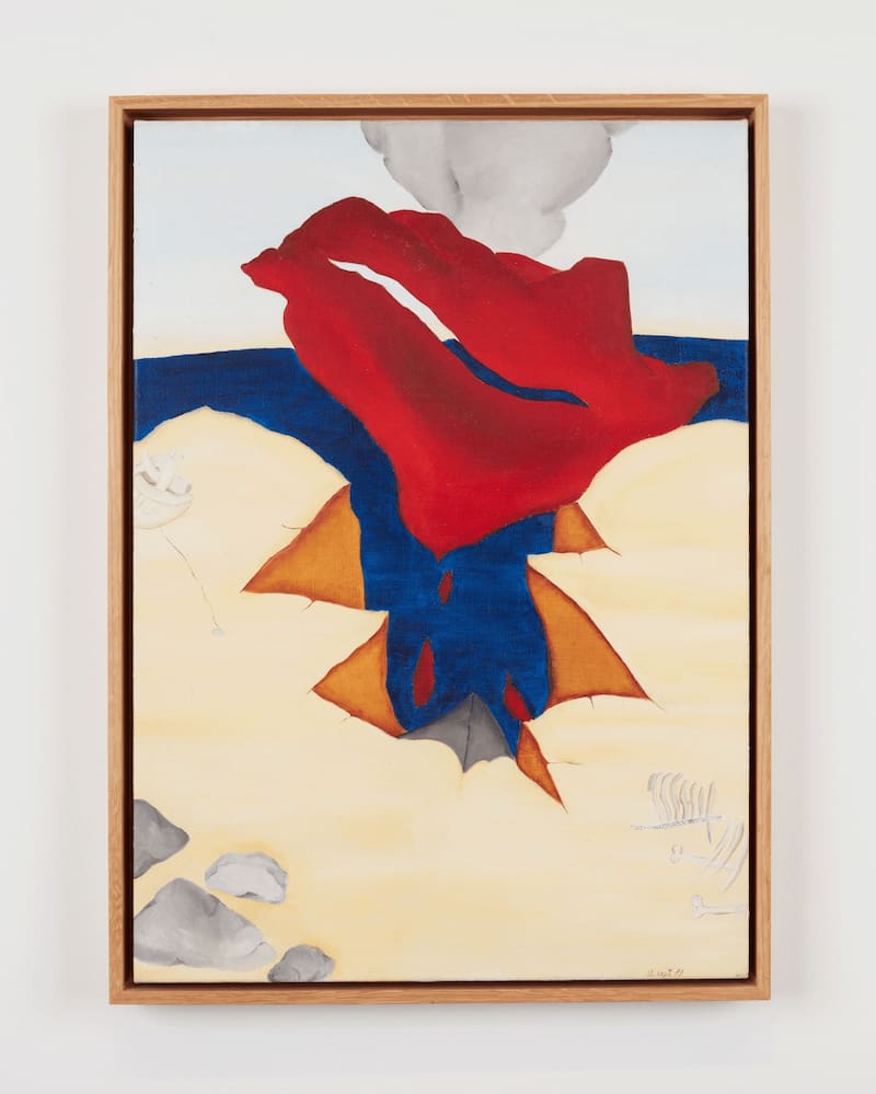 El título del cuadro no deja espacio para rodeos. La muerte de Allende es un óleo sobre tela en el que una gran gota de sangre cae sobre un despeñadero en un desierto. “Ahí está la visión de lo que iba a pasar en Chile -agrega Vicuña-. La gigantesca gota de sangre cayendo al abismo. Y eso fue lo que empezó a suceder cuando empezaron a raptar a los seres humanos, torturarlos y tirarlos desde helicópteros al fondo del mar. Para mí, esa pintura es una muestra de que el arte sabe mucho antes que nosotros qué es lo que realmente está pasando y va a pasar. No es que la artista sea anticipatoria, es que el arte y la poesía son por definición anticipatoria”.