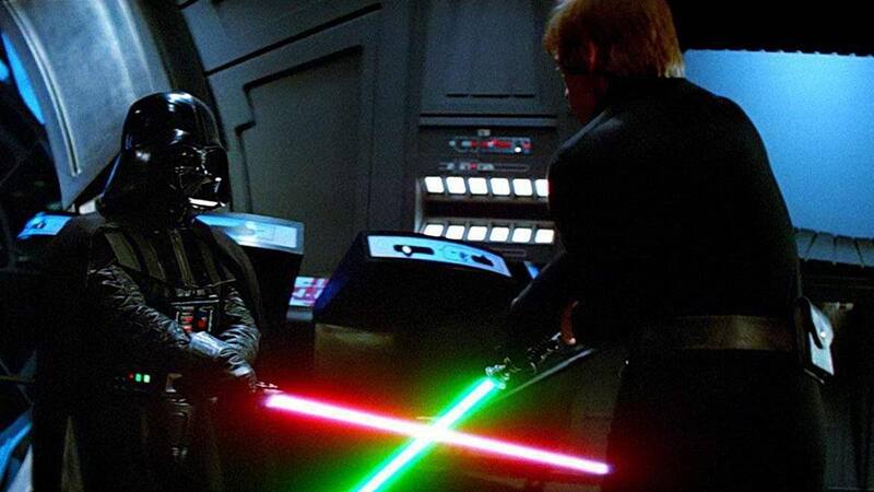 En la versión alternativa de esa escena, George Lucas imaginaba un vuelco sombrío. En las sesiones de escritura a las que accedió J.W. Rinzler para crear su libro The making of Star Wars: Return of the Jedi (2013), se lee: “Luke se quita la máscara. La máscara es lo último, y luego Luke se la pone y dice: ‘Ahora soy Vader’. ¡Sorpresa! Es el último giro. ‘Ahora iré y mataré a la flota (rebelde) y gobernaré el universo’”. Contó con la bendición de Kasdan, quien planteó: “Eso es lo que creo que debería suceder”.