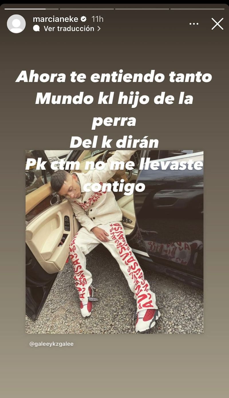 Marcianeke también, aunque en un tono crudo, lapidario y que muchos usuarios de la web han calificado de “preocupante”. De hecho, ha apuntado al trasfondo del fallecimiento de Galee Galee: el ciberacoso que sufrió durante la tarde del mismo viernes, luego de que algunos mensajes apuntaran a un supuesto acto de infidelidad hacia su actual pareja.