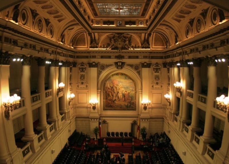 Al ingresar en el Salón de Honor del ex Congreso Nacional, una imponente pintura al óleo levantada justo en el centro de la habitación resalta entre toda la estructura histórica que configura el lugar. El edificio, ubicado a pocos metros de la Plaza de Armas de Santiago, es por sí mismo un testimonio centenario de la historia republicana de nuestro país. Inaugurado en 1876 con motivo de la última cuenta pública del ex presidente Federico Errázuriz, el palacio de estilo francés fue la primera sede del Poder Legislativo, que pasó más de 60 años sin un lugar propio para sesionar.