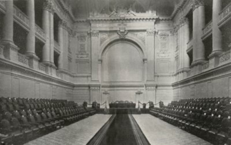 En los primeros registros se puede observar el amplio salón con sus paredes pulcras y completamente blancas. Por entonces, aún faltaban varias décadas para que Pedro Subercaseaux, uno de los pintores chilenos más importantes de la primera mitad del siglo XX famoso por su trabajo recreando escenas de nuestra historia, plasmara en él uno de los murales con mayor valor histórico del ex Congreso.