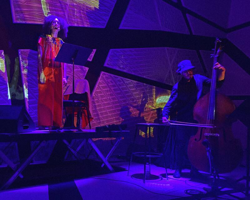 La actuación incluyó un video interactivo del artista interdisciplinaria Andrea Wolf y diseño de vestuario de la diseñadora de moda y científica social Lucia Cuba.