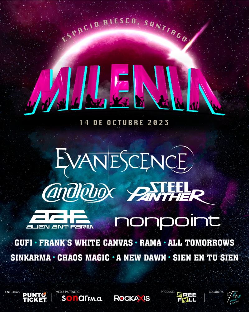 Este próximo sábado 14 de octubre se llevará a cabo la primera edición del festival Milenia en Espacio Riesco. A los ya confirmados cabezas de cartel, Evanescence y Candlebox, se suman los grupos Alien Ant Farm, Steel Panther y Nonpoint.