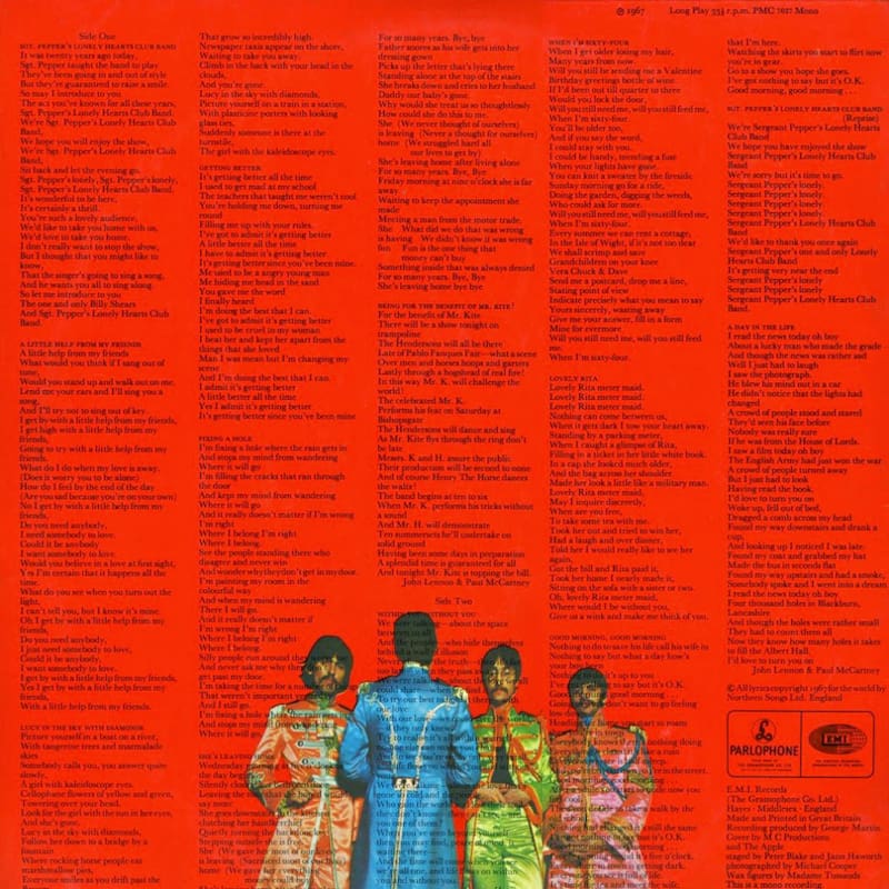 Por entonces, McCartney comenzaba a ganar más peso en las decisiones creativas del grupo. De su inspiración surgió el concepto de la banda imaginaria (la del sargento Pepper), a imitación de las nuevas bandas que surgían en la costa oeste de EE.UU. Además escribió varias de las canciones y dedicó horas de estudio a componer y grabar melodiosas líneas de bajo eléctrico que están entre las mejores que hizo para la banda. Imbuido del pensamiento de vanguardia y el ánimo optimista del swinging London, el LP presentaba una inmersión total de los Beatles en la contracultura del momento. “El ambiente del álbum estaba en el espíritu de la época, porque nosotros encajábamos con el ambiente de entonces”, detalló él mismo en el libro The Beatles Anthology.