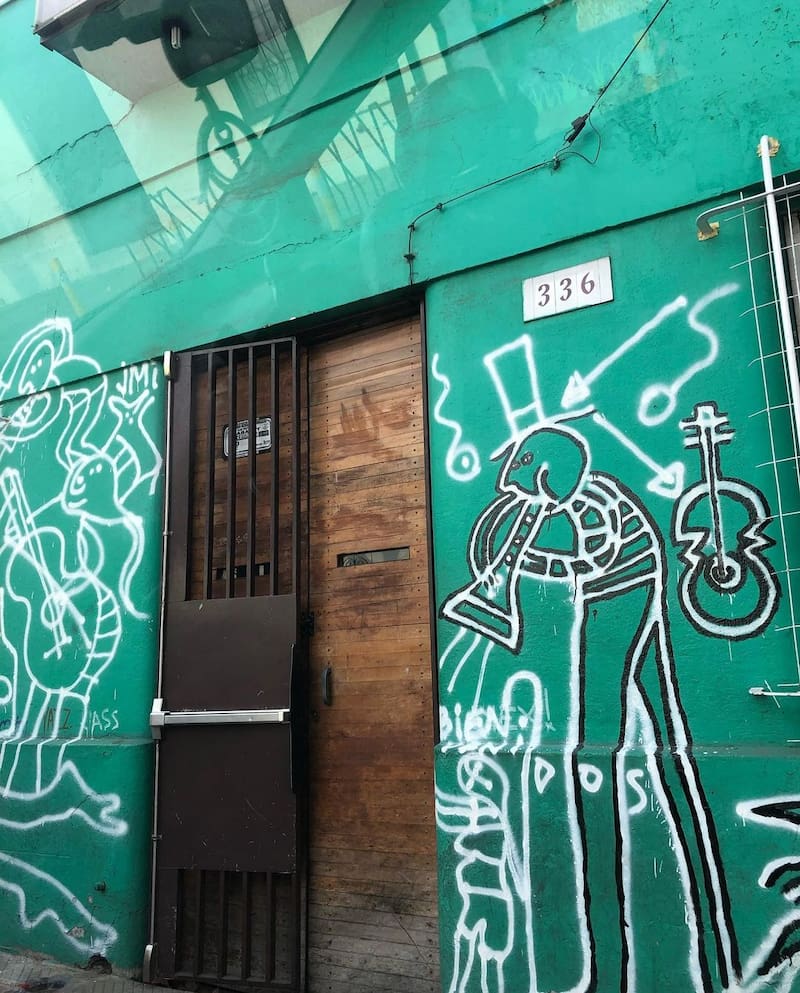 Se trata de una vivienda de fachada continua. Afuera, no hay mayor advertencia de su presencia. Sólo la pintura verde y un viejo letrero en su cumbre la distinguen de sus pares. El Thelonious crece casi en secreto, como una historia que es un rizoma, lejos de las modas y tendencias del momento que parecen devorar los barrios aledaños. Acaso camuflado por las luces y los guardias que decoran la entrada del club nocturno en la vereda de enfrente.