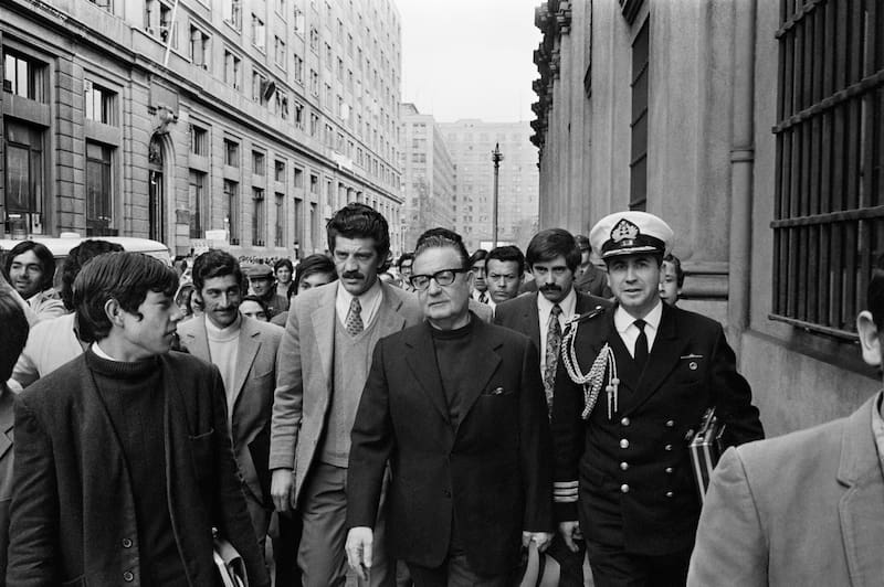 Fotografié al Presidente Allende en dos ocasiones en La Moneda, acompañando al corresponsal de la revista Time y otra vez al de la revista Newsweek. Lo fotografié en cada vez en una habitación oscura mientras lo entrevistaban. No era un muy buen escenario para lograr buenas fotografías. Otras veces lo fotografié durante apariciones públicas. Siempre me recordó a una figura paterna. Tuve la sensación de que la gente lo amaba genuinamente; él era su esperanza para un futuro mejor.