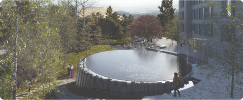 Otro elemento primordial del proyecto es el agua, que en diferentes culturas, tiene muchos simbolismos poderosos, como la regeneración, la purificación y la sanación. Para darle continuidad a este imaginario, la arquitecta diseñó una fuente que a la vez servirá como un espejo que reflejará y realzará la luz solar en este espacio. En el fondo del agua, se perpetuará un poema del escritor chileno, Santiago Elordi, titulado “Era un día como hoy” (“It Was a Day like This”).