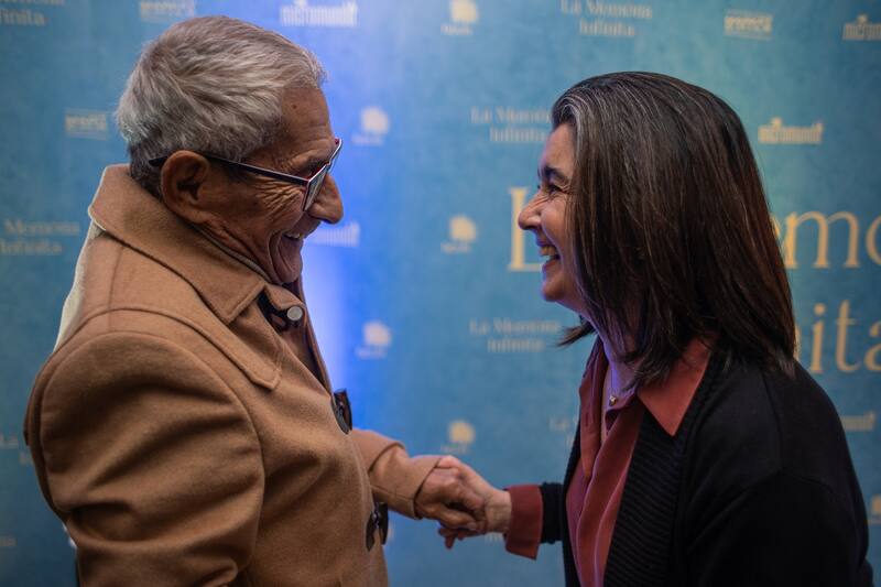 Urrutia se saludó afectuosamente con Claudia Di Girolamo, Francisco Reyes y otros compañeros de profesión con los que ha compartido durante su trayectoria en teatro, televisión y cine, además de cantantes como Myriam Hernández y Manuel García, quien en La memoria infinita vuelve a colaborar con Alberdi en el soundtrack. La actriz también recibió con especial cariño a Sergio Chamy, el protagonista de El agente topo (2020), a quien no conocía personalmente. “¡Ella es la que hace estas cosas!”, le dijo, apuntando a la documentalista.