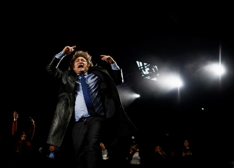 Pese a toda la trifulca, Milei no claudicó y siguió presentándose como “el león” según el diseño de La Renga en sus citas masivas, las que muchas veces parecen más un concierto que una instancia política. En agosto pasado, antes de las PASO –donde terminó siendo el candidato más votado con un 30%, con serias posibilidades de ganar la presidencia en octubre-, cerró su campaña en el Movistar Arena de Buenos Aires y, ante una multitud enardecida, proclamó nuevamente el rugido felino desprendido del tema de La Renga.