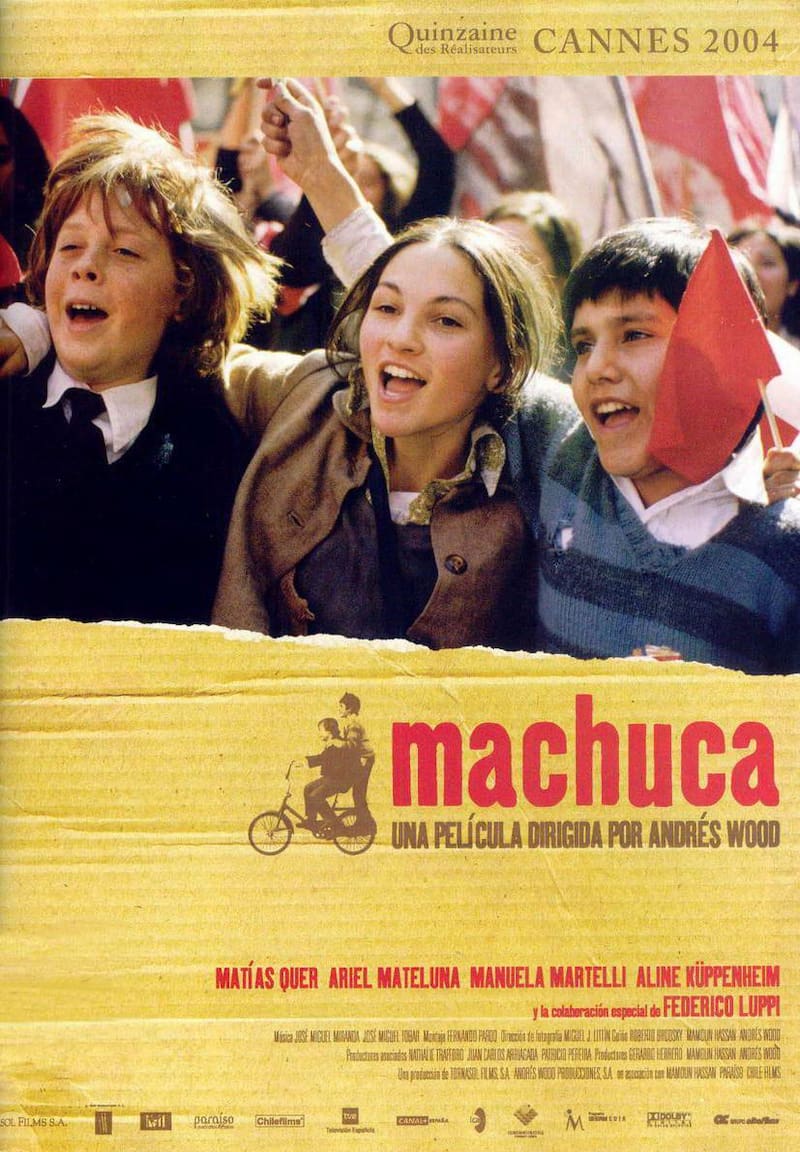 Machuca (2004, disponible en YouTube), de Andrés Wood, tiene como telón de fondo los años previos al 11 de septiembre de 1973 y el mismo golpe, moldeando toda la trama y la relación entre los personajes. La suerte del protagonista, un niño de pocos recursos que es trasladado a un prestigioso colegio del barrio alto, depende del destino político del país. Es una de las razones de la grandeza de esta película: es capaz de contar la pequeña historia del chileno común y corriente enlazándola con la historia con mayúsculas. En ese sentido, tiene algo de Adiós a los niños (1987), la hermosa cinta de Louis Malle sobre dos colegiales que corren distinta suerte después de la ocupación nazi de Francia.