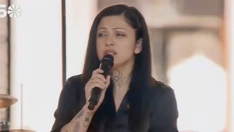 Tal como se anunció, la exitosa cantante viñamarina subió al escenario para cantar una de las composiciones finales del malogrado cantautor. Acompañada de banda, arreglos de bronces e instrumentos eléctricos, la artista desplegó una contundente interpretación.