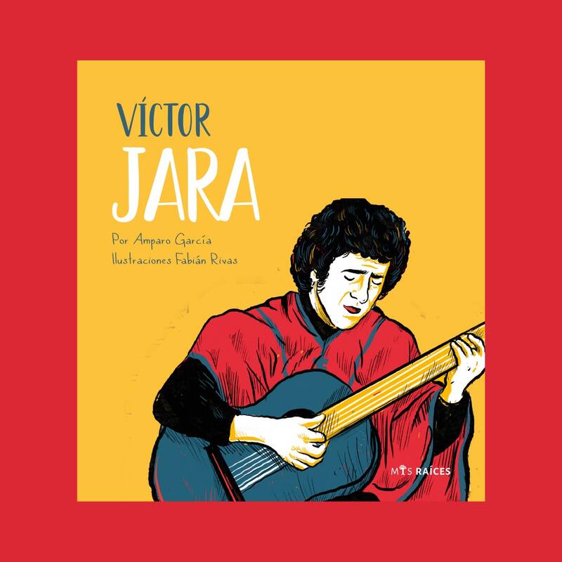 La vida y obra de Víctor Jara, su asesinato y su legado musical, han conmovido ha generaciones y han inspirado numerosas obras y publicaciones en diferentes formatos. Este año, con motivo del 50 aniversario del golpe y de su muerte, aparecieron nuevas aproximaciones a su figura, y se han rescatado otras. Así, Mario Amorós publicó una minuciosa biografía sobre el cantautor (La vida es eterna), que entre otras cosas sitúa su nacimiento en Santiago, y recientemente salió a la venta la novela gráfica Un canto comprometido, de Carlos Reyes y Rodrigo Elgueta. Además, hace unos días volvió a la cartelera el musical Víctor sin Víctor Jara de los hermanos Gopal y Visnú Ibarra, y en Netflix aun es posible ver el documental Masacre en el estadio. En este contexto Ediciones Mis Raíces publica ahora un libro ilustrado sobre la vida del músico, dirigido a los pequeños lectores. Escrito por Amparo García, el relato es una biografía novelada que se detiene en hitos esenciales de su trayectoria: la niñez de pobreza en el campo, el traslado a Santiago, el amor por la música y la muerte de su madre, su desarrollo artístico y su último poema, escrito en el Estadio Chile. Ilustrado por Fabián Rivas, en las imágenes dominan los tonos amarillo, rojo y azul. Narrativamente, el texto es un esfuerzo por acercar la vida del artista a lectores jóvenes y con ese fin simplifica y sintetiza hechos y episodios. Lo extraño es que asegure que Víctor Jara salió de su casa hacia la Universidad Técnica del Estado, donde trabajaba, el miércoles 12 de septiembre, cuando está documentado que él se dirigió a la universidad la mañana misma del golpe, el martes 11. Nunca más volvió a su hogar.