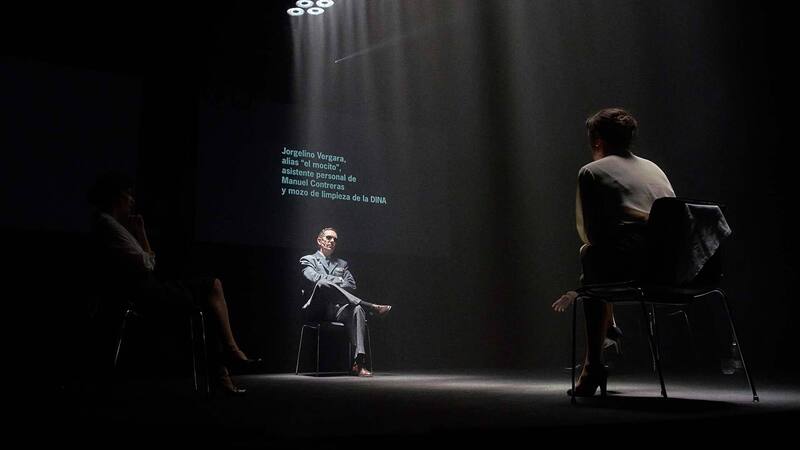 De esos talleres surgió la idea de montar un teatro circular que, complementado con pantallas que reproduzcan videos de archivo, permita una experiencia mucho más inmersiva. Eso dio paso al levantamiento de puentes con instituciones chilenas como el Museo de la Memoria y el archivo de la Universidad de Santiago (USACH). Sin embargo, uno de los contactos más significativos fue con el documentalista Pedro Chaskel.
