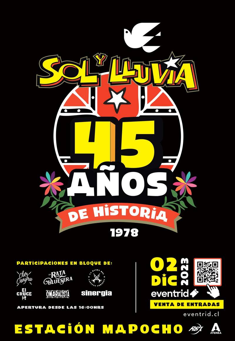El próximo sábado 2 de diciembre en la Estación Mapocho, la agrupación nacional Sol y Lluvia, realizará un concierto en el que festejará sus 45 años de trayectoria.