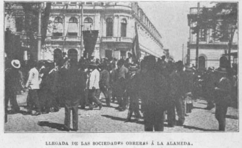 En esos primeros años del siglo XX, Chile era un país primario exportador y basado en la economía del salitre, con el poder concentrado en la oligarquía tras su triunfo en la Guerra Civil de 1891. Pero como hoy, en las marchas también existían los lienzos. Estandartes, en esa época, así lo describe Gonzalo Izquierdo: “Los obreros de la tracción eléctrica, por ejemplo, llevaban tres estandartes: uno de ellos mostraba la figura de un buey aprisionado por los ganaderos y al pueblo tratando de liberarlo; en otro de los estandartes aparecía un esqueleto humano (el pueblo) y a su lado, un gordo personaje que fumaba un cigarro puro (un hacendado); el tercero, finalmente, mostraba un buey gordo sobre el cual decía ‘carne para los ricos’, a su lado aparecía la triste Eigura de un caballo flaco con la leyenda ‘carne para el pueblo’. Por otra parte, un estandarte llevado por los representantes de la primera comuna decía: ‘Abajo los monopolios. El pueblo manda que se suprima el impuesto’. El que llevaban los de la segunda comuna, en cambio, tenía otro carácter, decía: ‘Cuidado señores estadistas con el despertar del pueblo. El pueblo pide la llapa’”. Era algo así como un “Chile despertó” de inicios del XX.