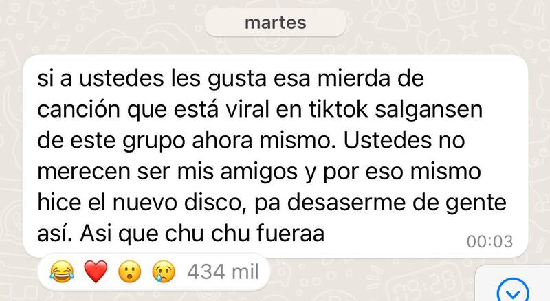 Canta: “Tú no eres mi fan real, por eso te tiré el celular” y hay algo incómodo en el uso de la tiradera cuando no se enmarca en la competencia de dos partes iguales: alguien que tira, alguien que puede tirar de vuelta.